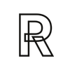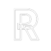 A white letter "R" inside a black circle with a white border.
